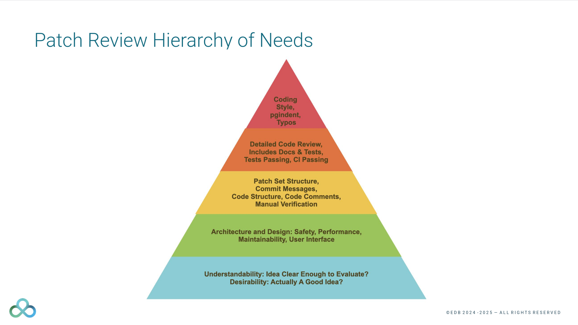 I occasionally try using AI for reviews too, with very limited success. The AI reviews seem to go directly against the “hierarchy of needs” from Robert’s An Exercise in Paranoia pgconf.dev talk.